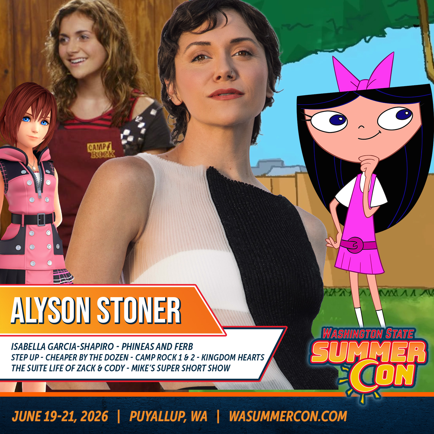 Stoner voices the loveable Isabella Garcia-Shapiro on the hit show Phineas and Ferb, and has appeared in over 200 films, TV shows, and tours.