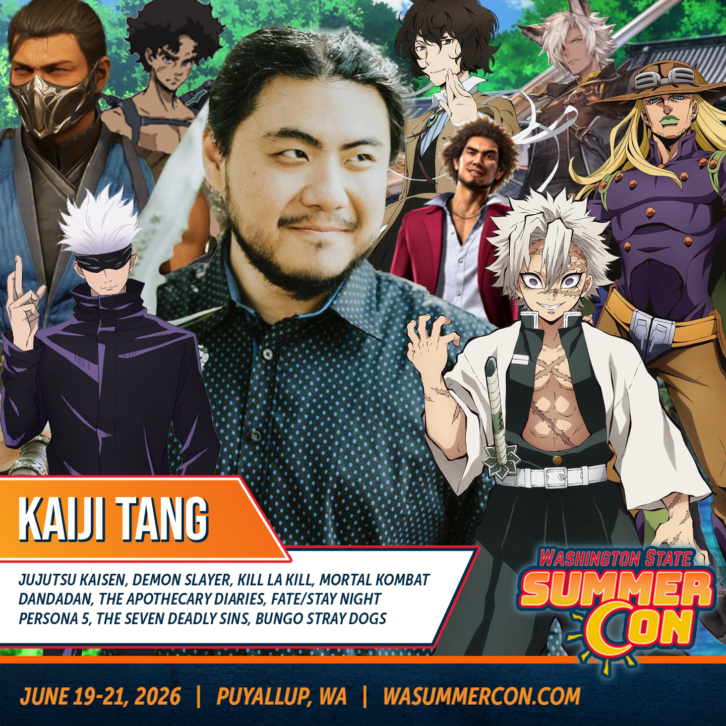 When it comes to Anime, you can hear him in such roles as Satoru Gojo (Jujutsu Kaisen), Osamu Dazai (Bungo Stray Dogs), Joe (Megalobox), Sanemi Shinazugawa (Demon Slayer), Guts (Berserk 2016), Ohma Tokita (Kengan Ashura), Archer (Fate/Stay Night: Unlimited Blade Works), Tsumugu Kinagase (Kill La Kill), Retsu (Baki), Poppo (Anohana: The Flower We Saw That Day), Bill (Beastars), and Hendricksen (The Seven Deadly Sins).